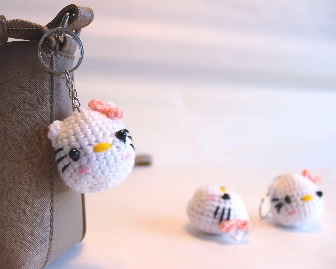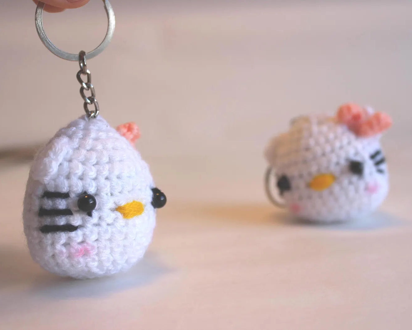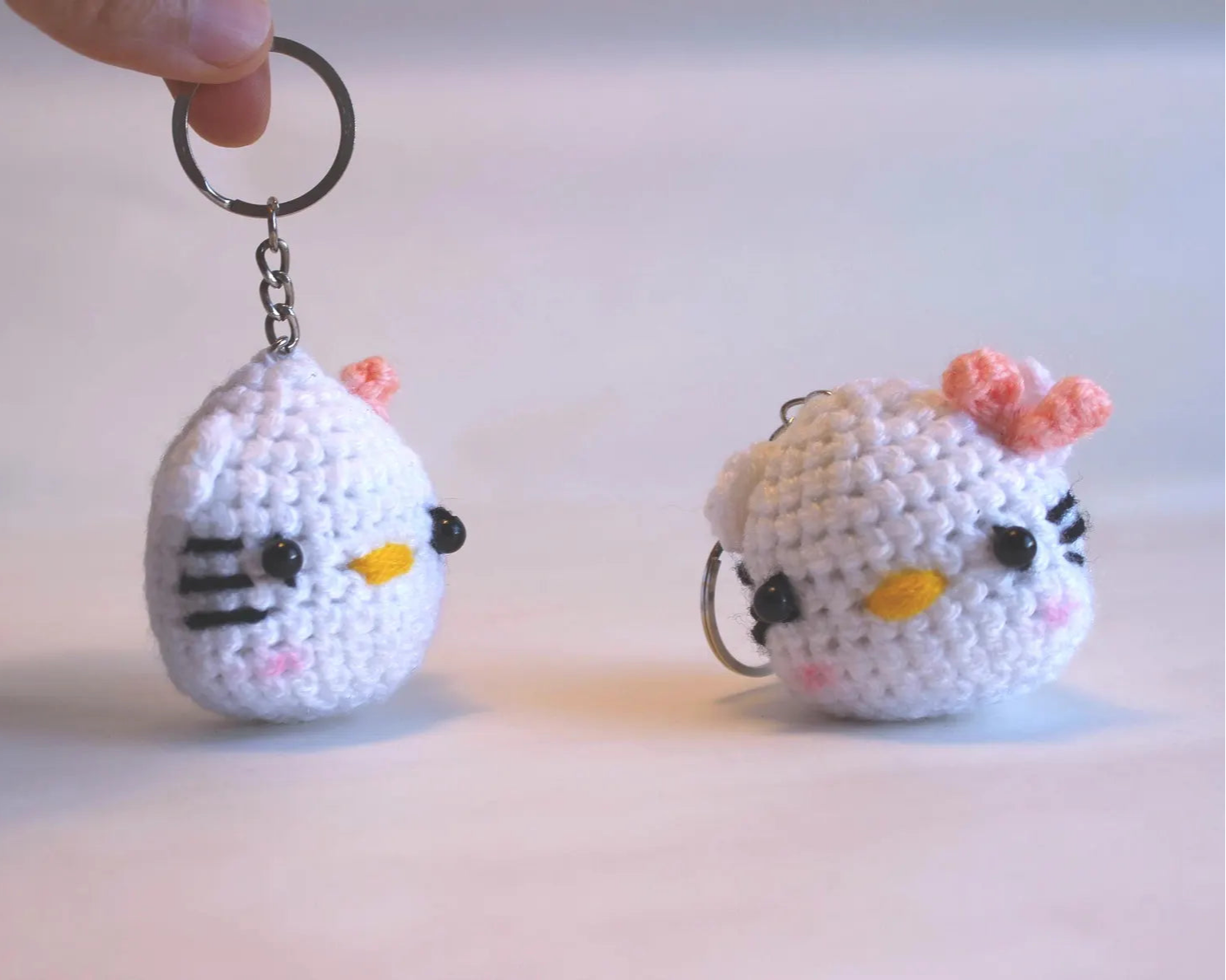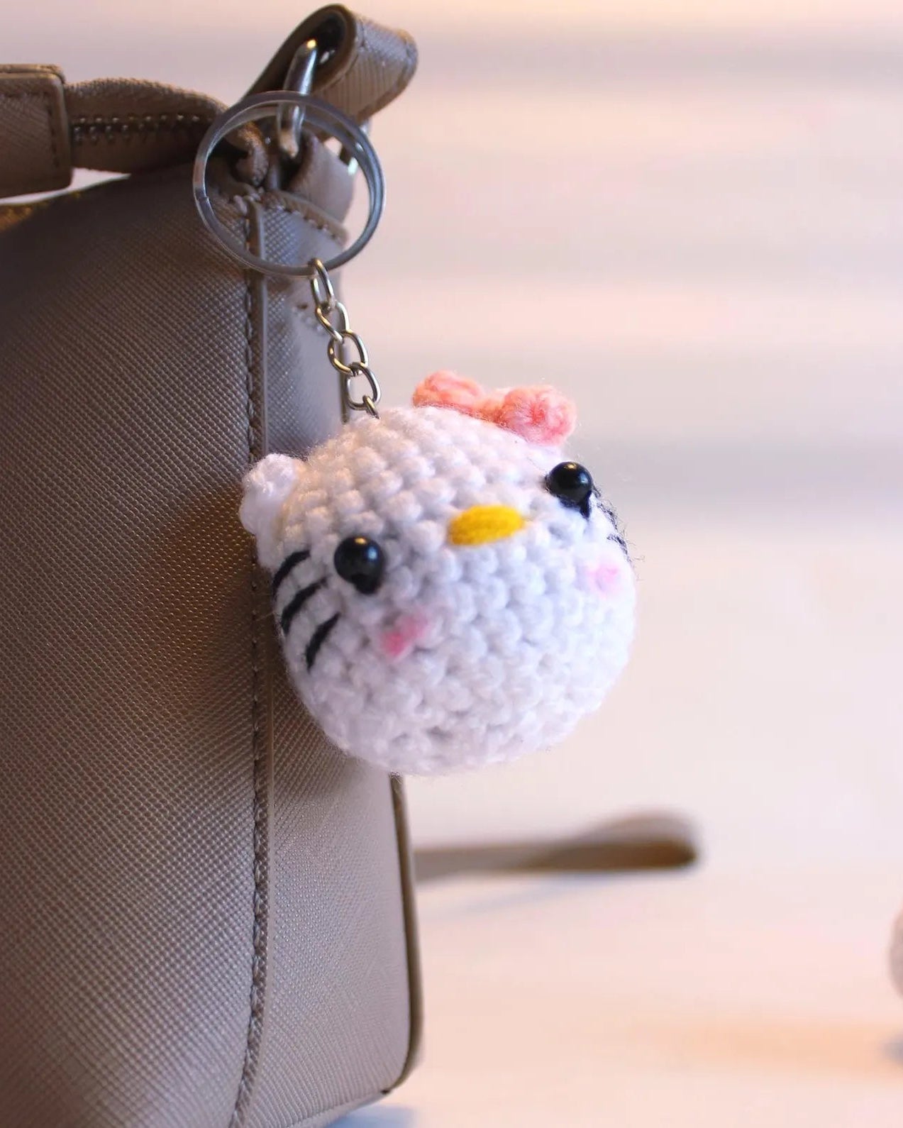 Dieser gehäkelte Katzen-Anhänger ist ein liebevoll gearbeitetes Unikat und sorgt für tierisch gute Laune – ob am Schlüssel, an der Tasche oder am Rucksack. Mit ihrem süßen Gesicht und den feinen Details ist die kleine Katze ein echter Blickfang.