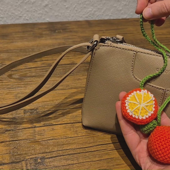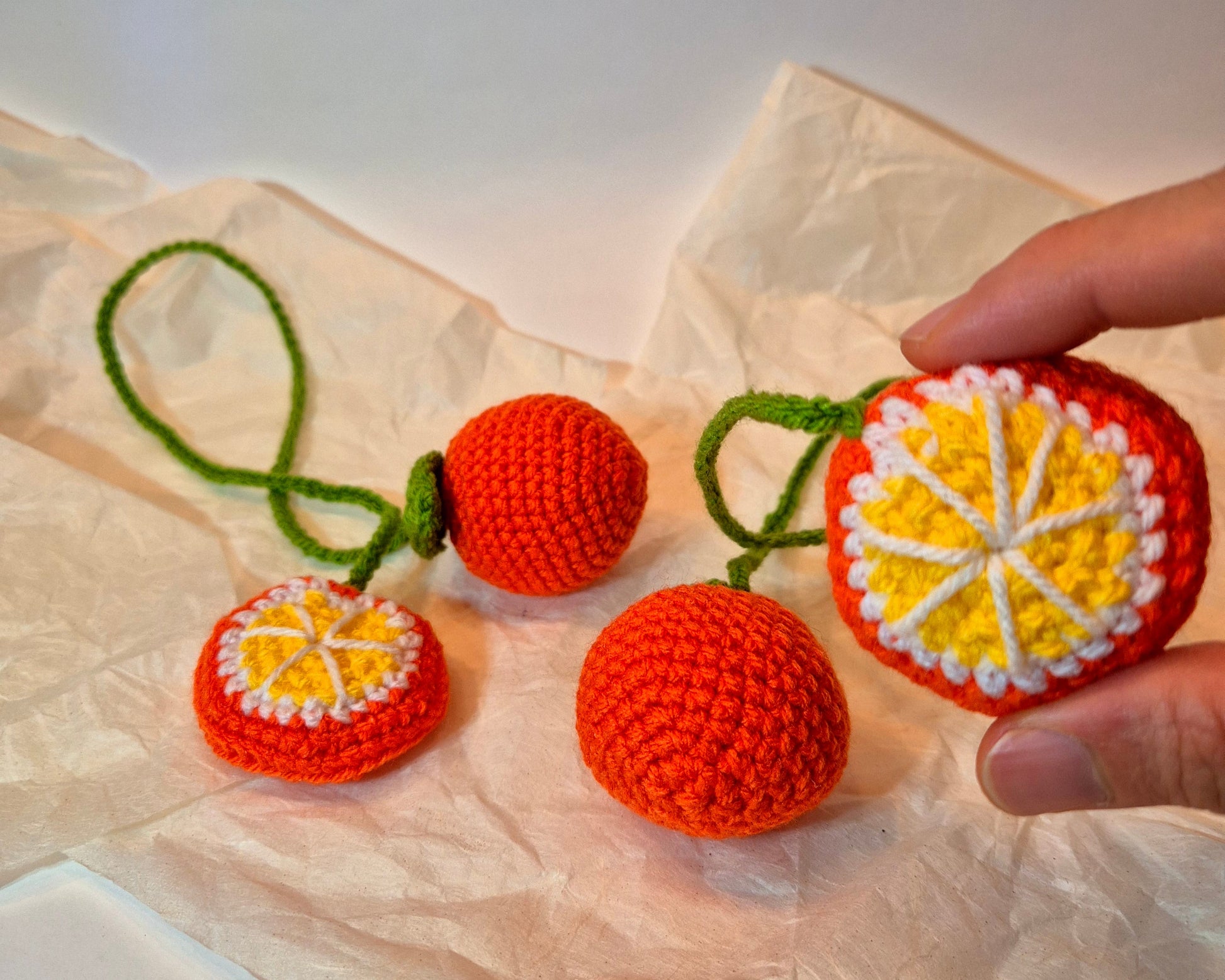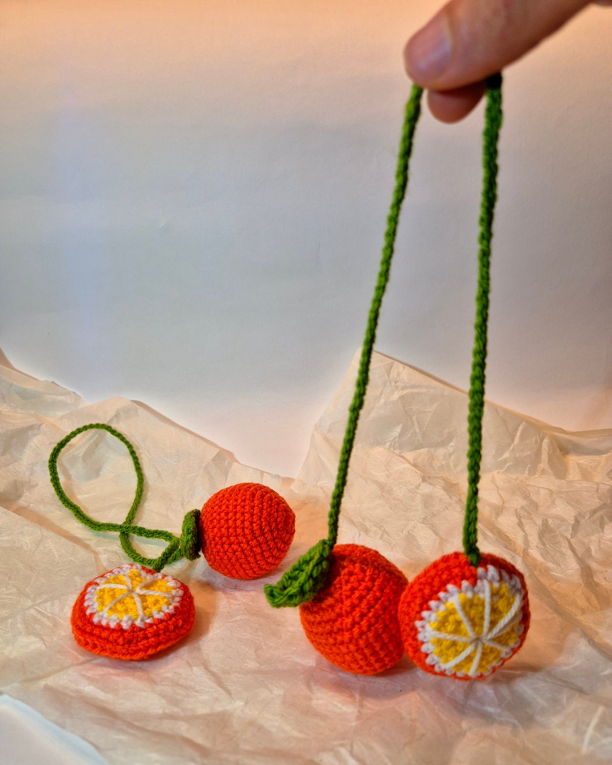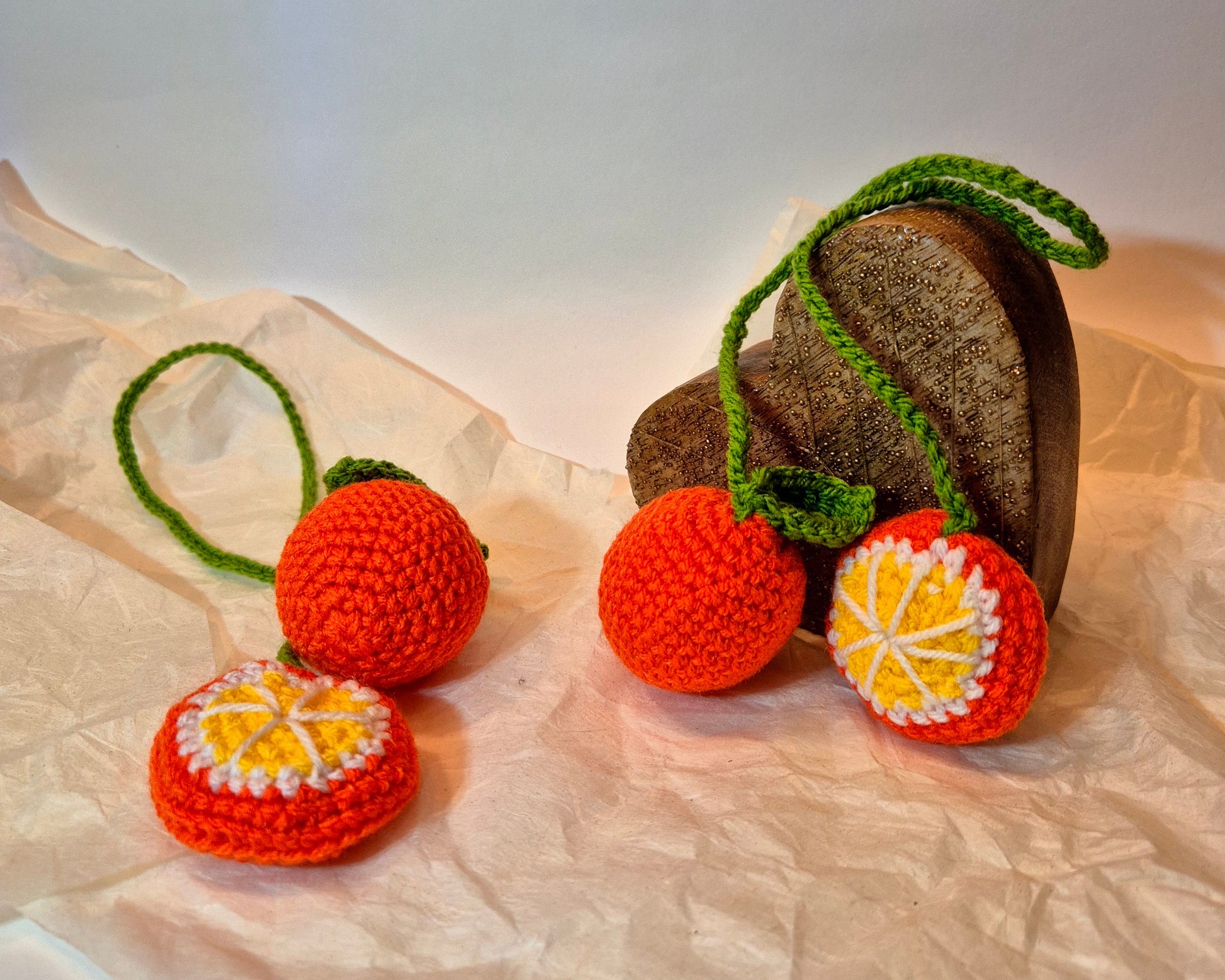 Bringe Farbe und gute Laune in deinen Alltag mit diesem liebevoll gehäkelten Orangen-Anhänger.