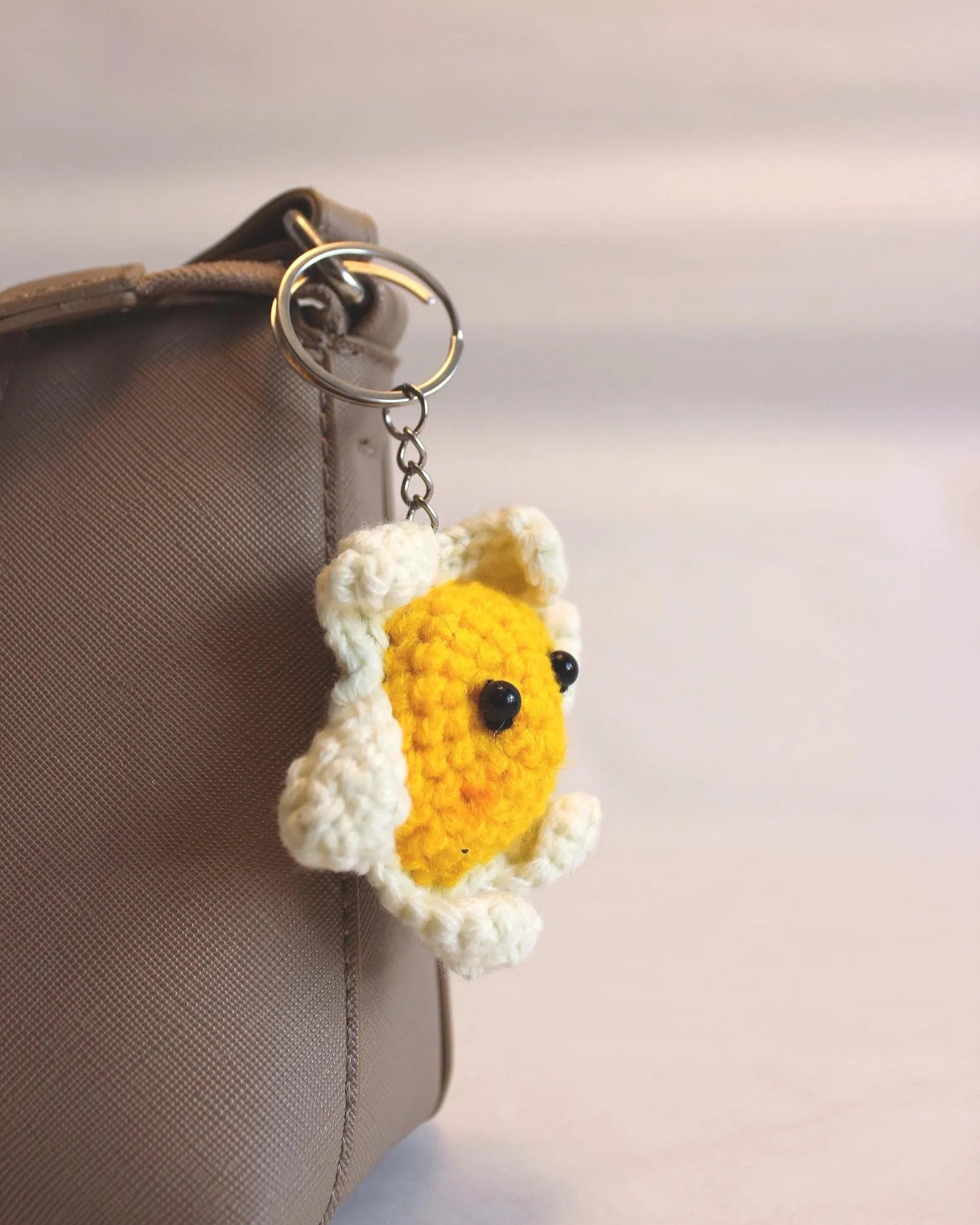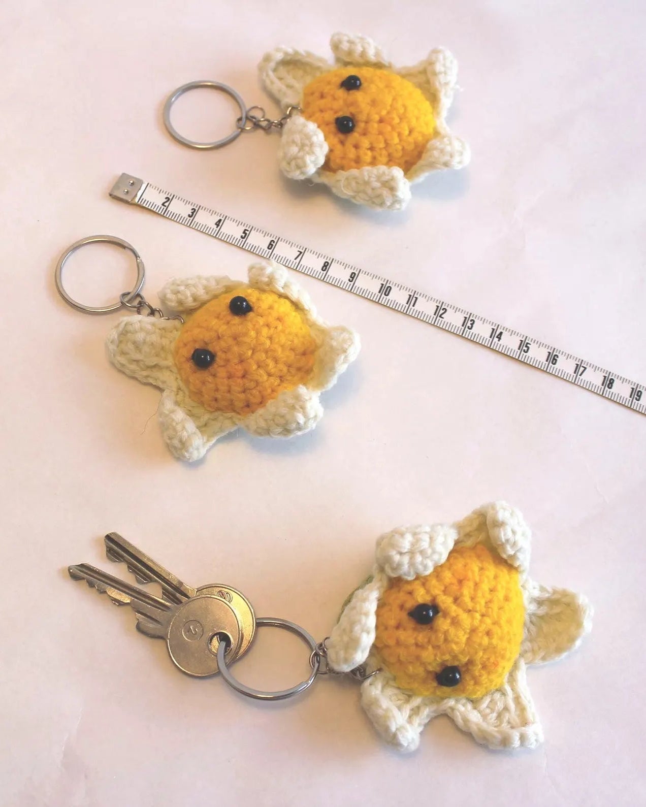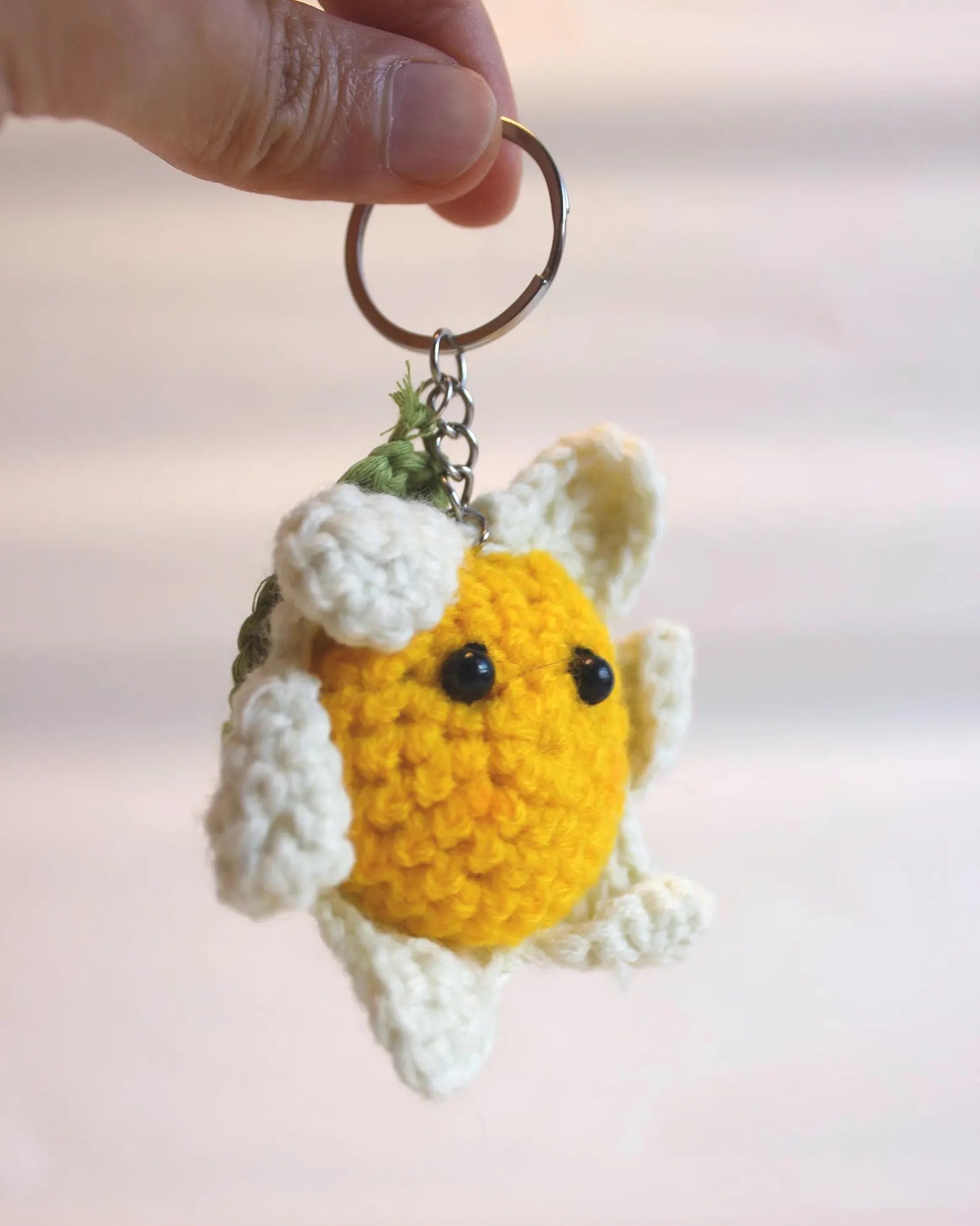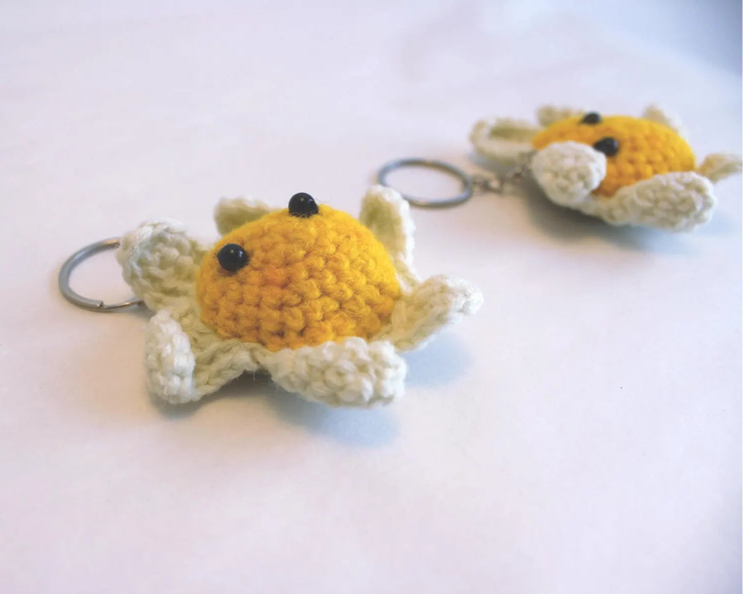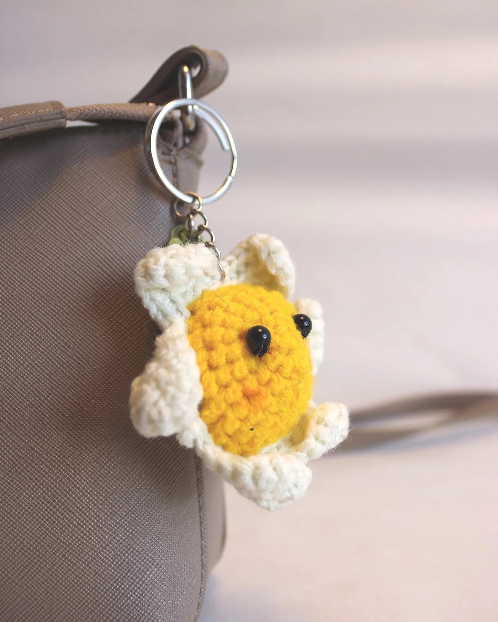 Diese gehäkelte Sonnenblume ist ein kleiner Sonnenschein für unterwegs! Mit ihrem fröhlichen Gesicht und den leuchtenden Blütenblättern bringt sie Farbe und gute Stimmung an Schlüssel, Taschen oder Rucksäcke.