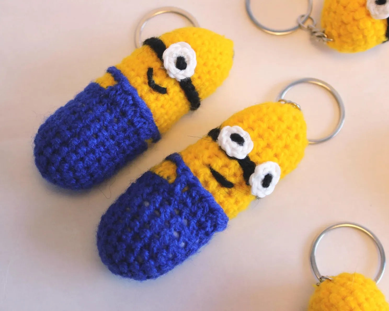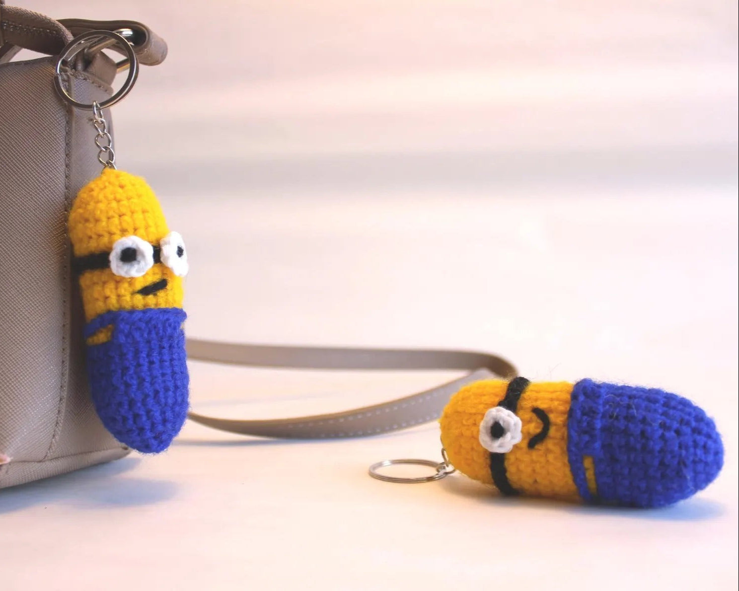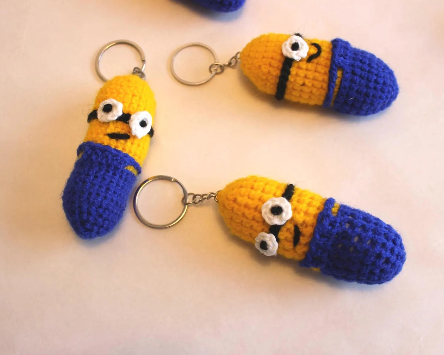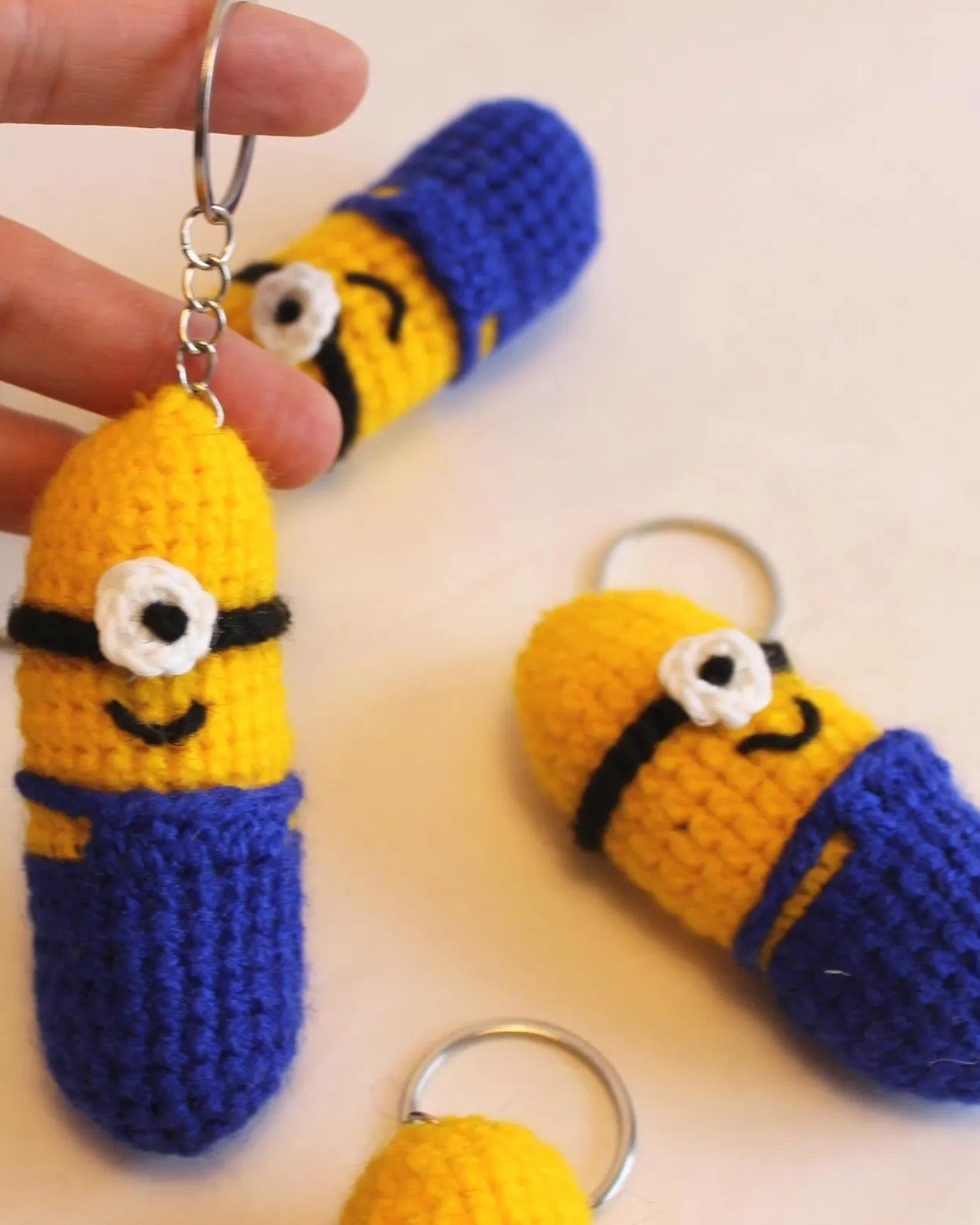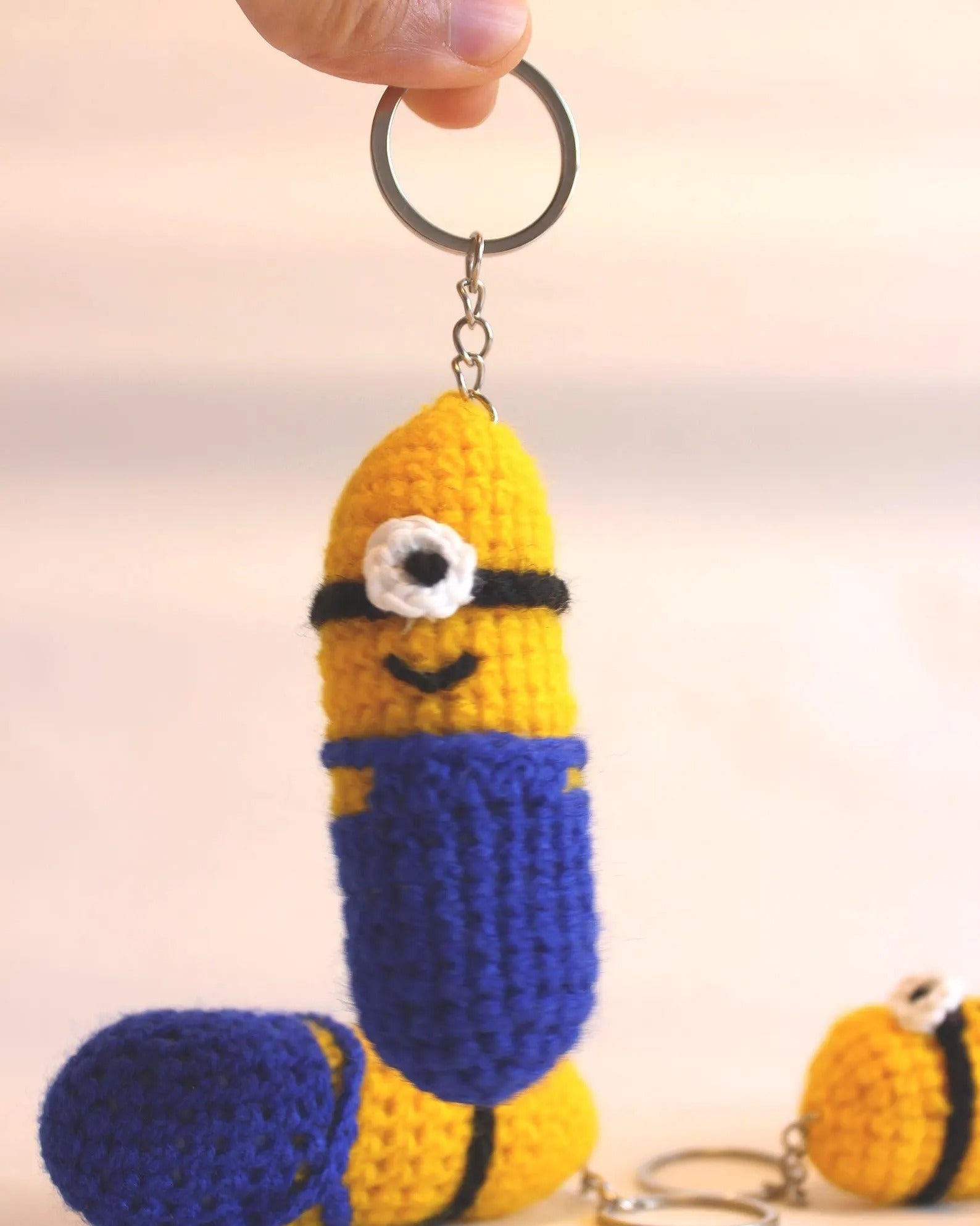 😄🧶 Gehäkelter frecher kleiner gelber Anhänger „inspiriert von einem gelben Helfer“ – voller Spaß und Charme