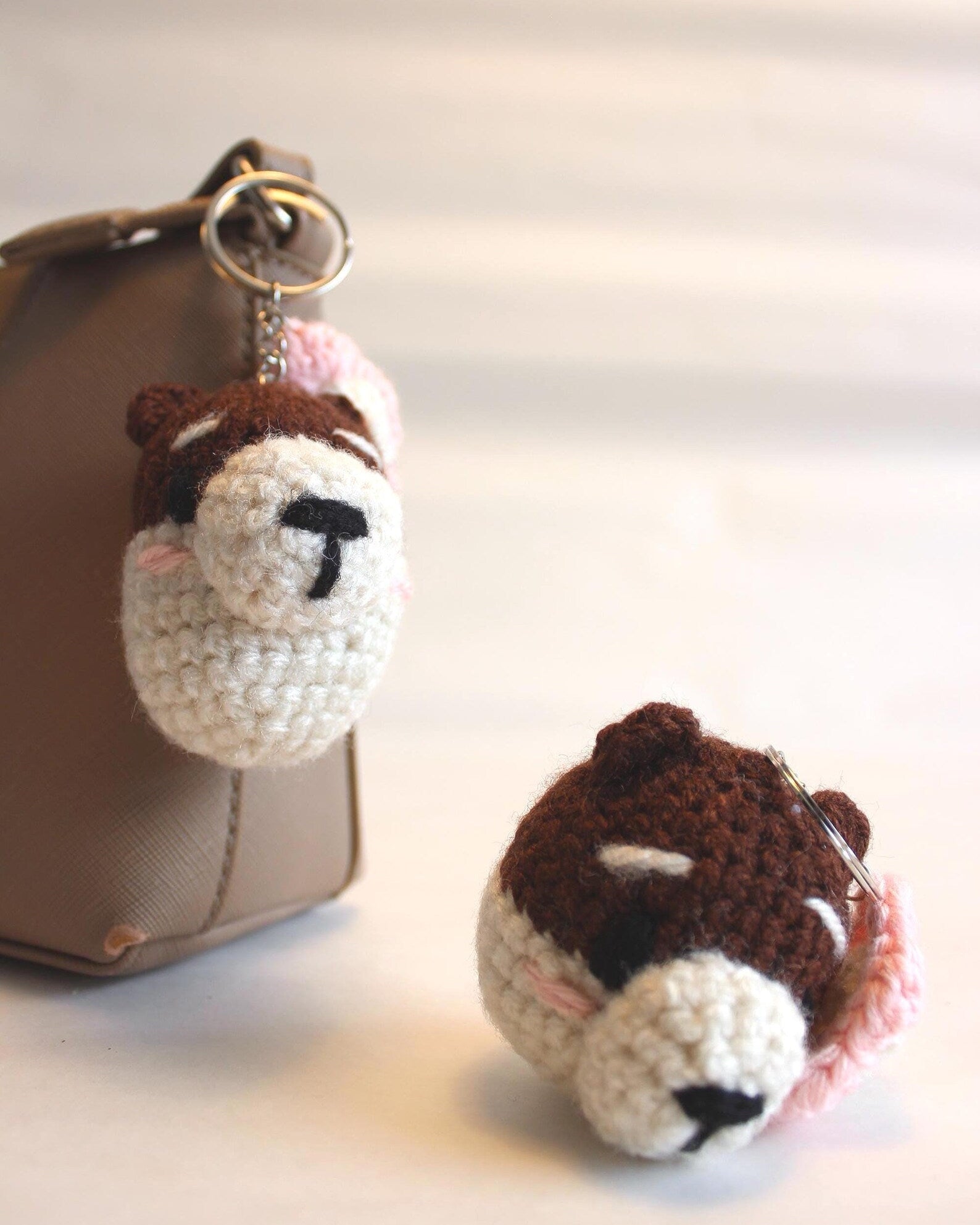 Dieser handgemachte Bär mit Blume ist ein liebevoll gehäkeltes Accessoire, das jedem Schlüssel, jeder Tasche oder jedem Rucksack einen charmanten Akzent verleiht. Die kleine Blume in der Pfote oder am Ohr macht ihn zu einem ganz besonderen Hingucker.