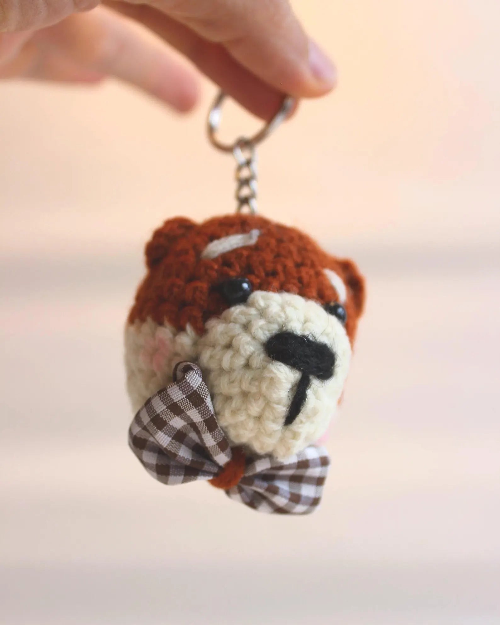 Dieser handgemachte Mini-Bär mit Schleife ist das perfekte Accessoire für deinen Alltag. Ob am Schlüsselbund, an der Tasche oder am Rucksack – der kleine Bär verleiht deinem Stil eine persönliche und niedliche Note.