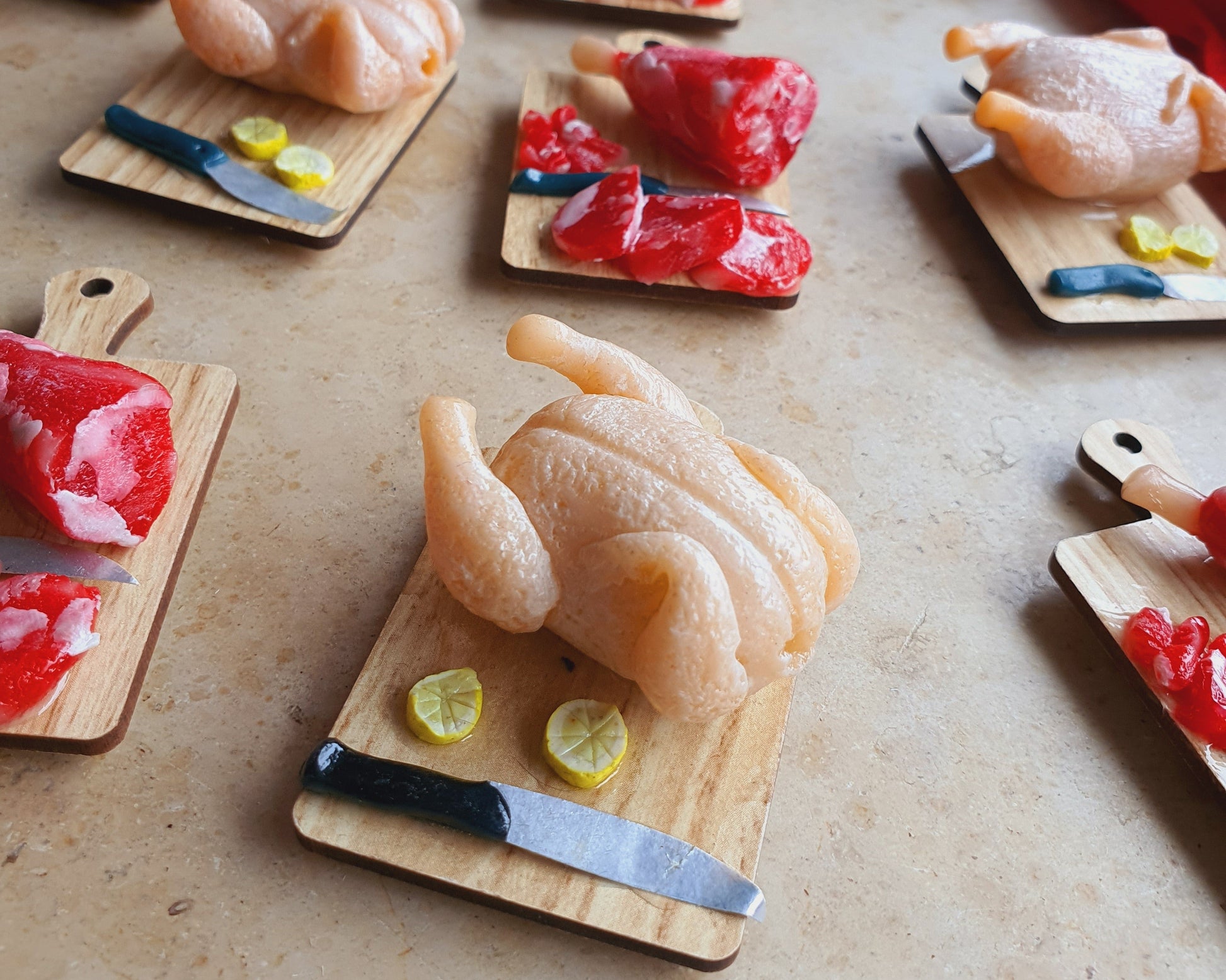 🍗🔪 Miniatur-Hähnchenbrett mit Magnet – detailreich, originell & handgemacht!