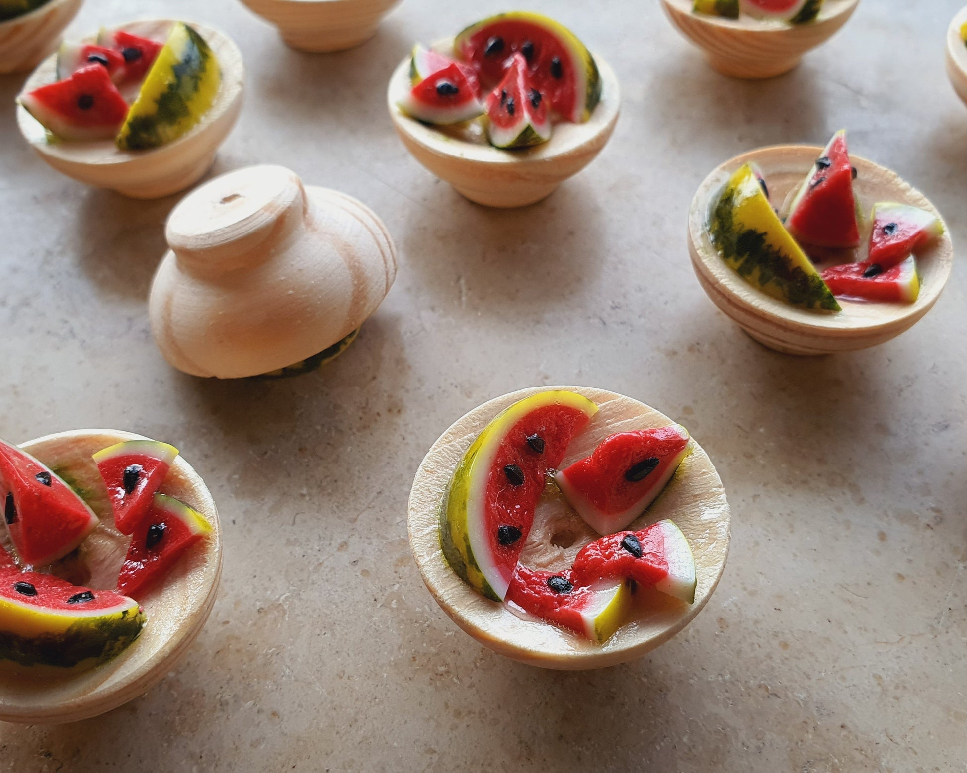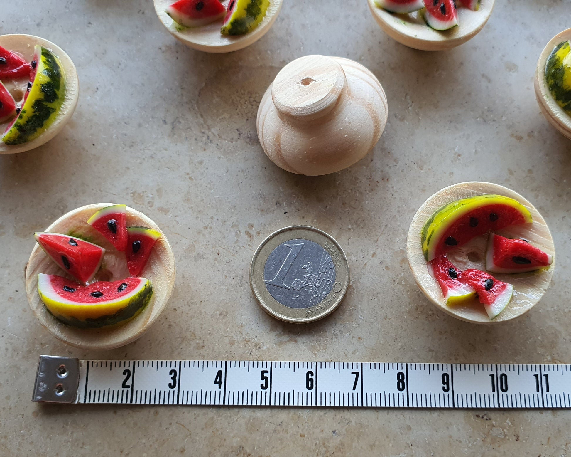 Handgemachte Mini-Wassermelonen-Holzschale – mit oder ohne Kühlschrankmagneten. Diese süße Miniatur-Wassermelonenschale ist ein liebevoll gefertigter Hingucker – perfekt für den Kühlschrank, das Büro, dein Zuhause oder die Puppenstube.