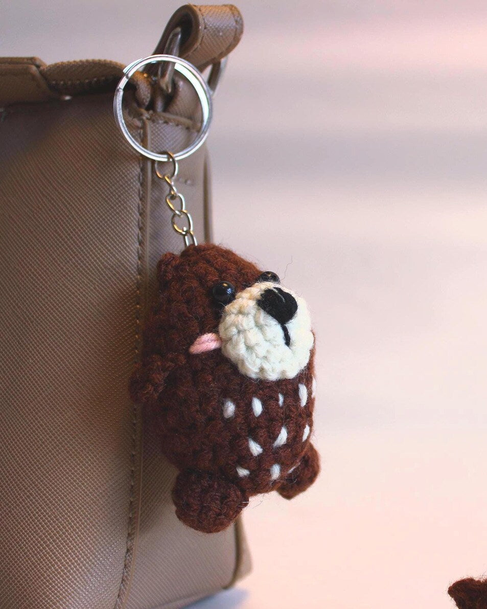 Unser gehäkelter Mini-Bär-Anhänger ist ein echtes Wohlfühl-Accessoire. Mit viel Liebe zum Detail gehäkelt, begleitet dich der kleine Bär an Schlüsselbund, Tasche oder Rucksack – immer bereit, ein Lächeln zu zaubern.