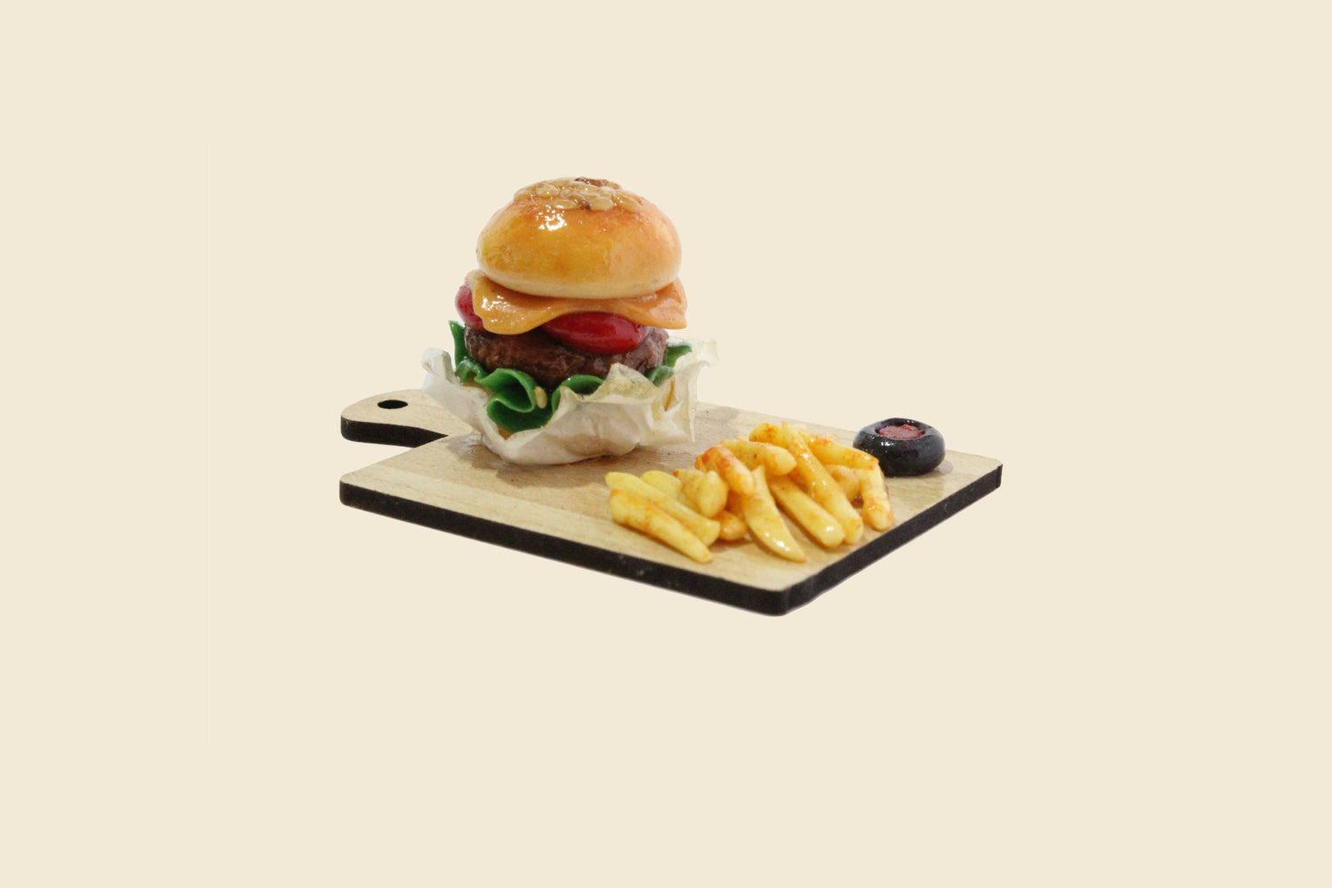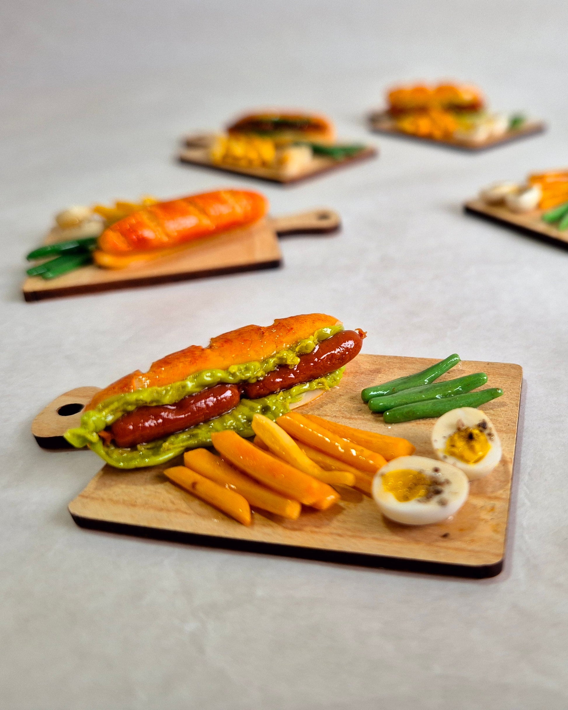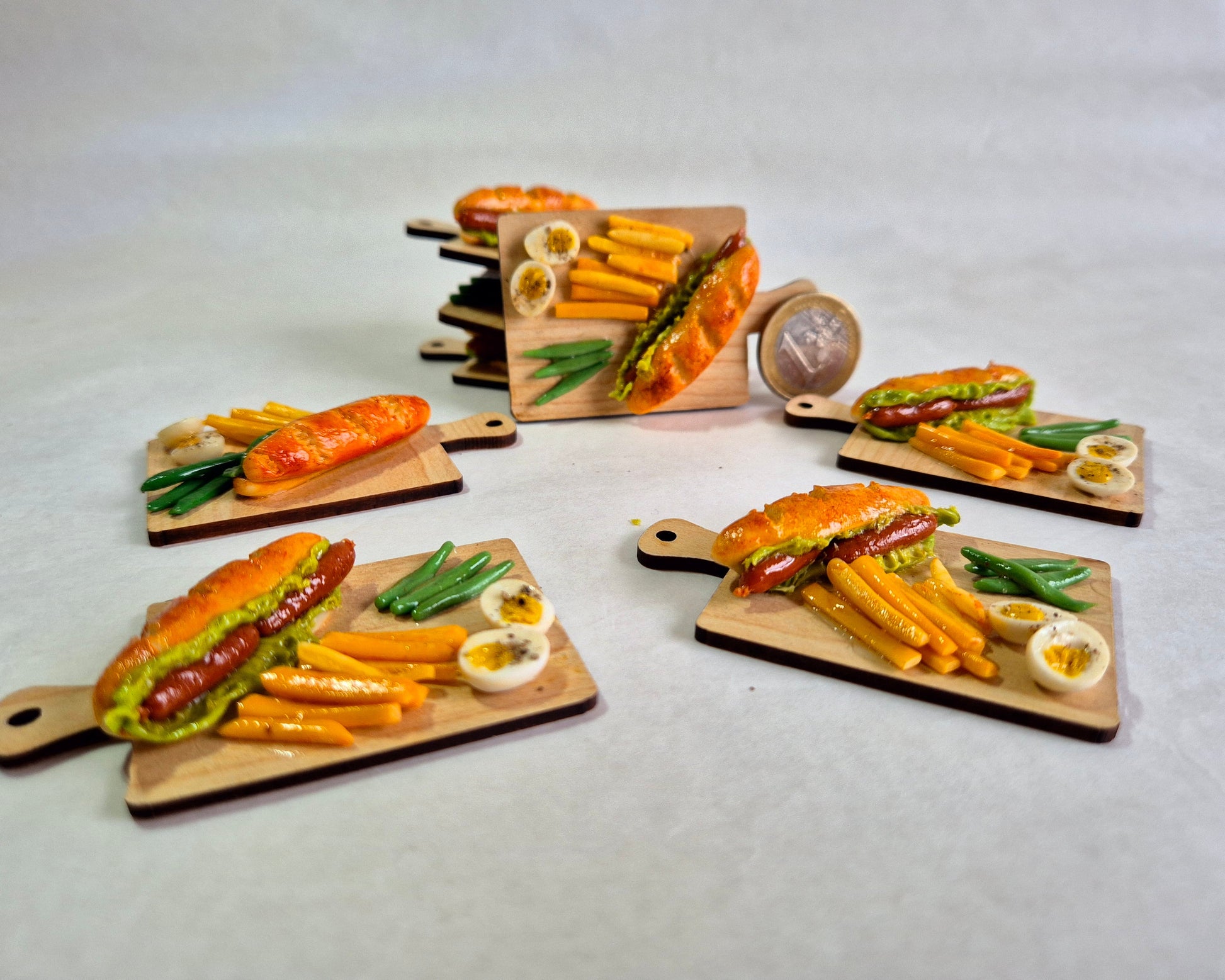 Liebevoll von Hand aus Fimo gefertigt, sieht diese Miniatur einem echten Bratwurstbrötchen zum Verwechseln ähnlich – nur viel, viel kleiner! Perfekt für Sammler:innen, Puppenhaus-Fans oder einfach alle, die detailverliebte Deko lieben.