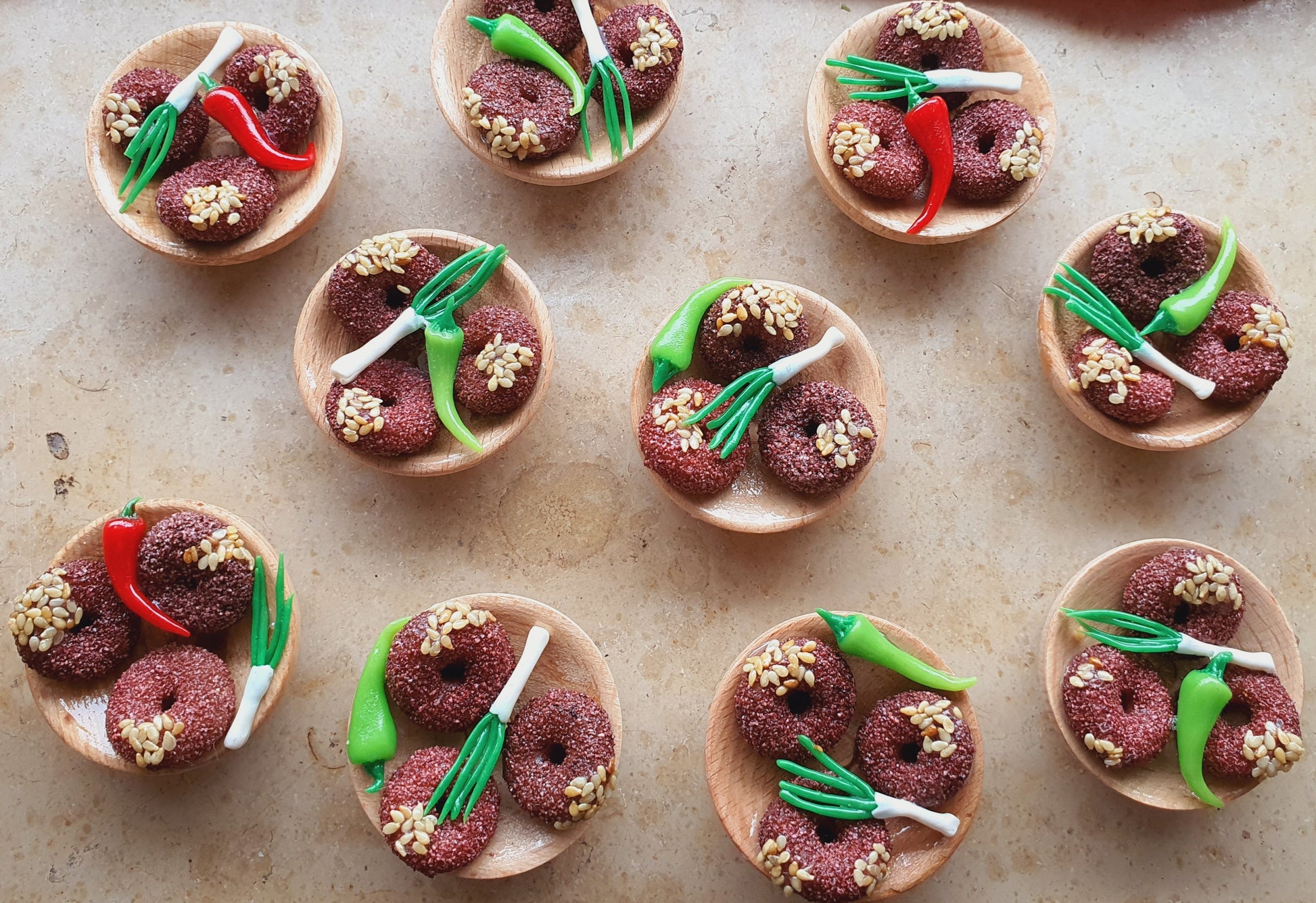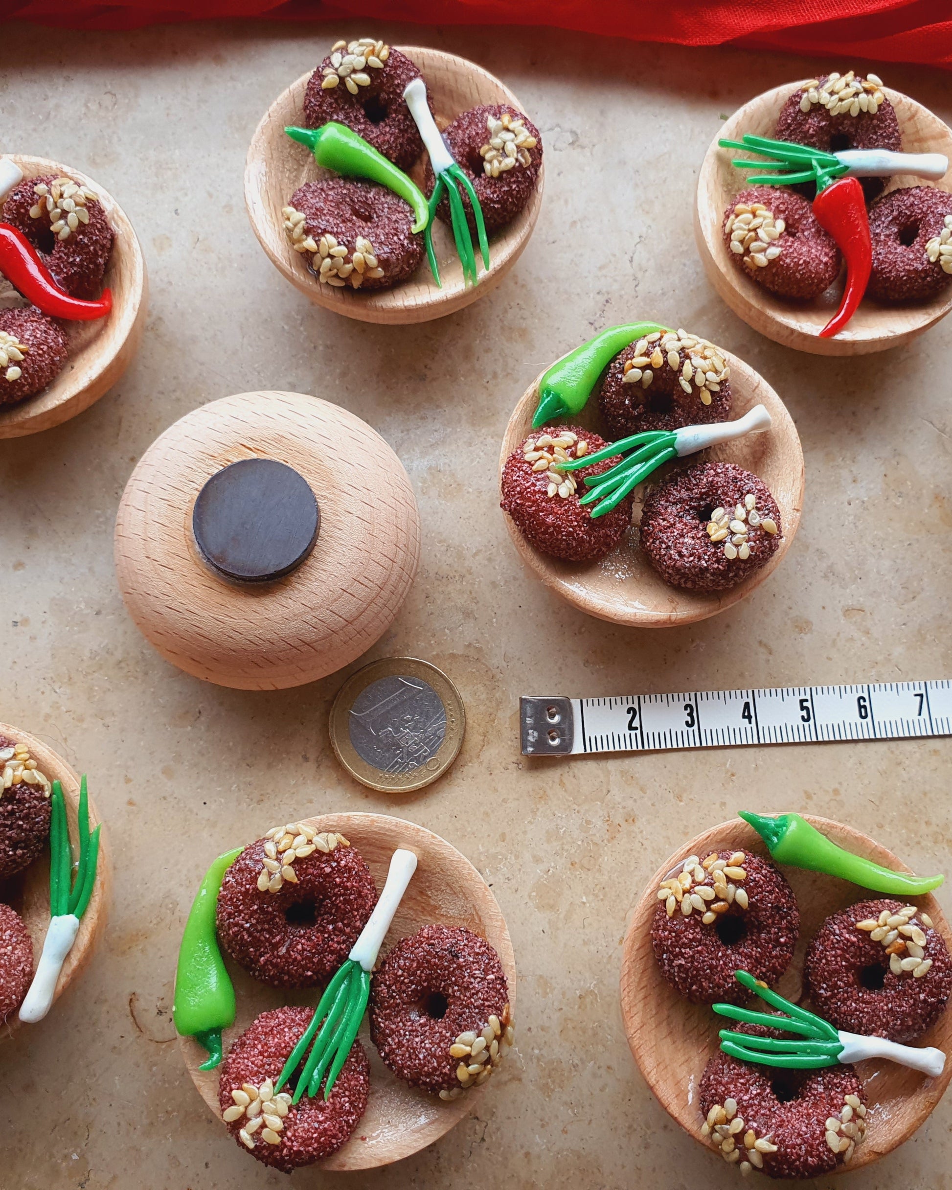 Handgemachte Miniatur-Falafelteller mit Kühlschrankmagneten.