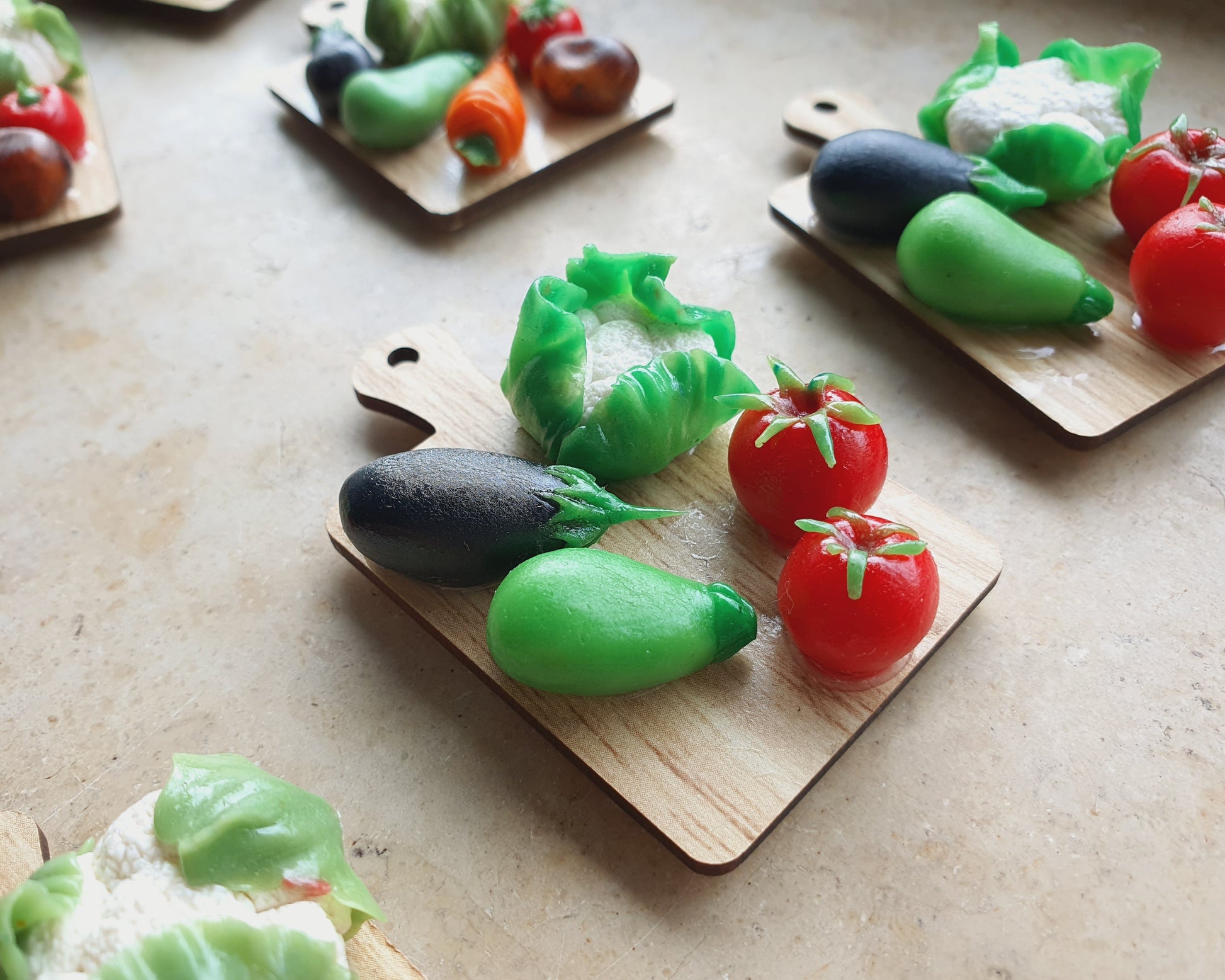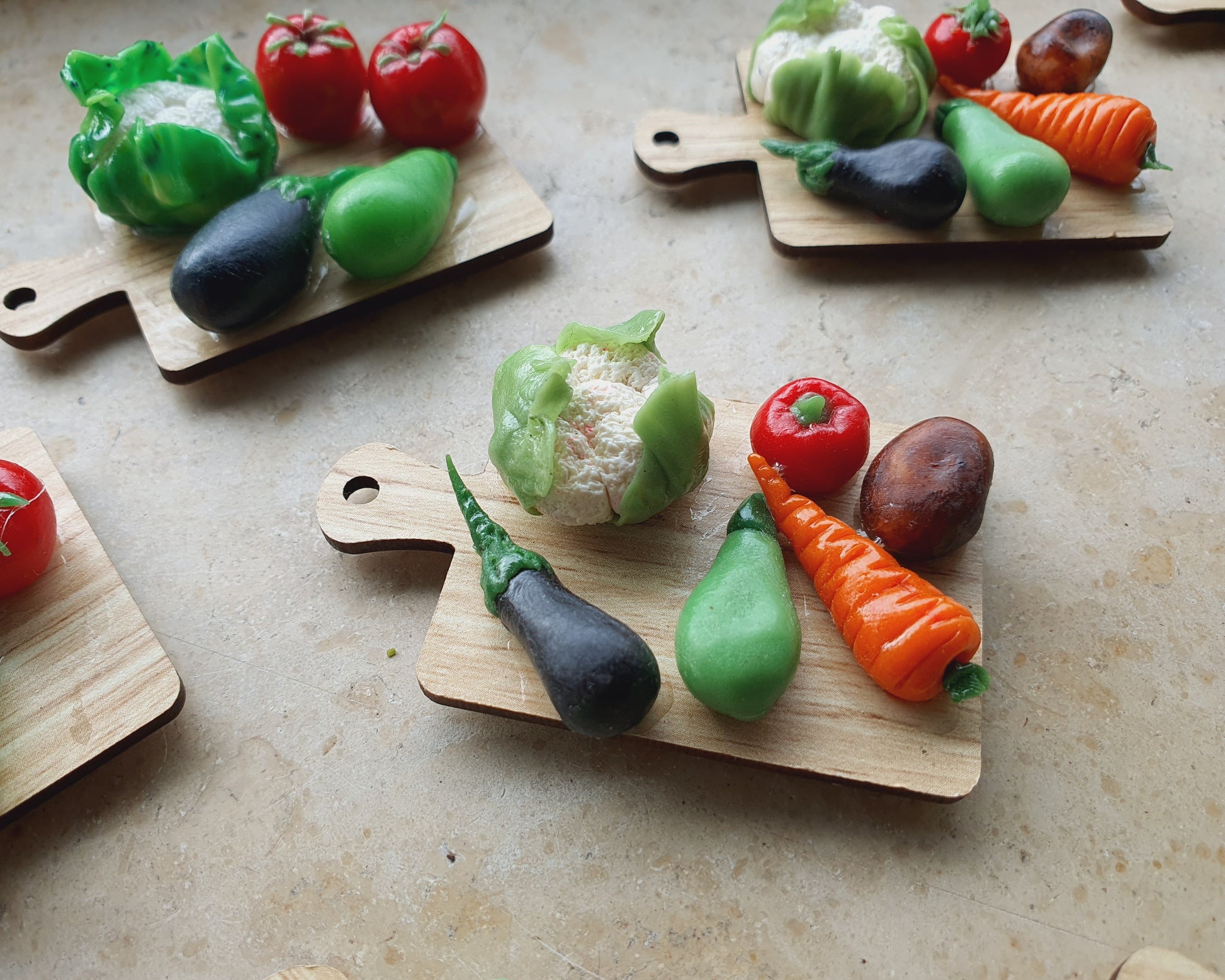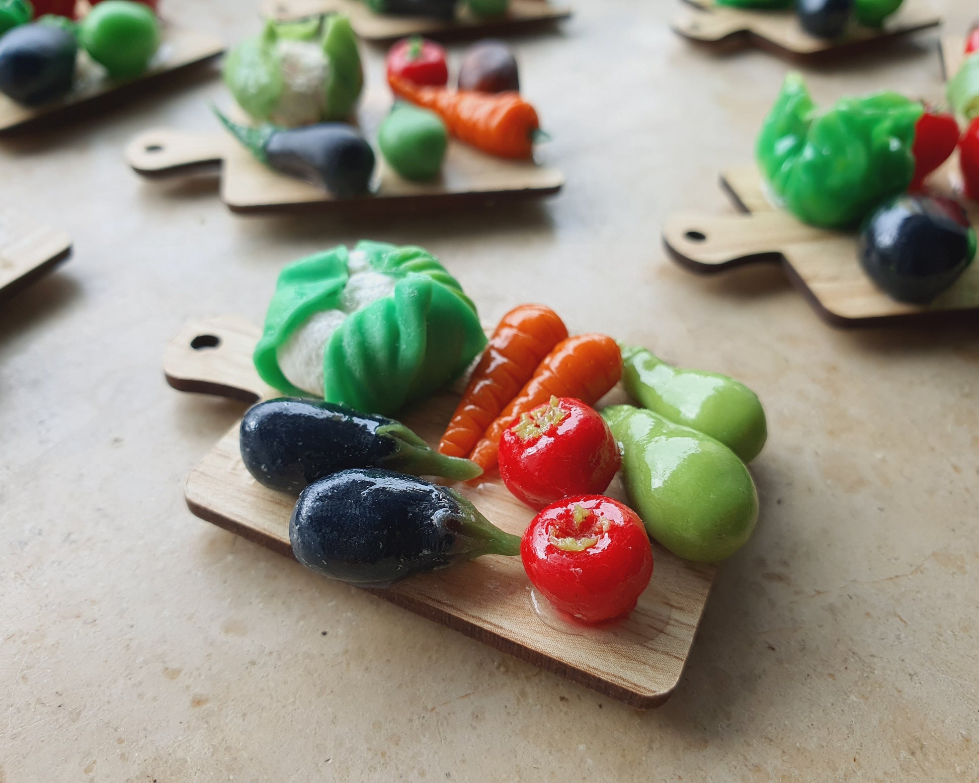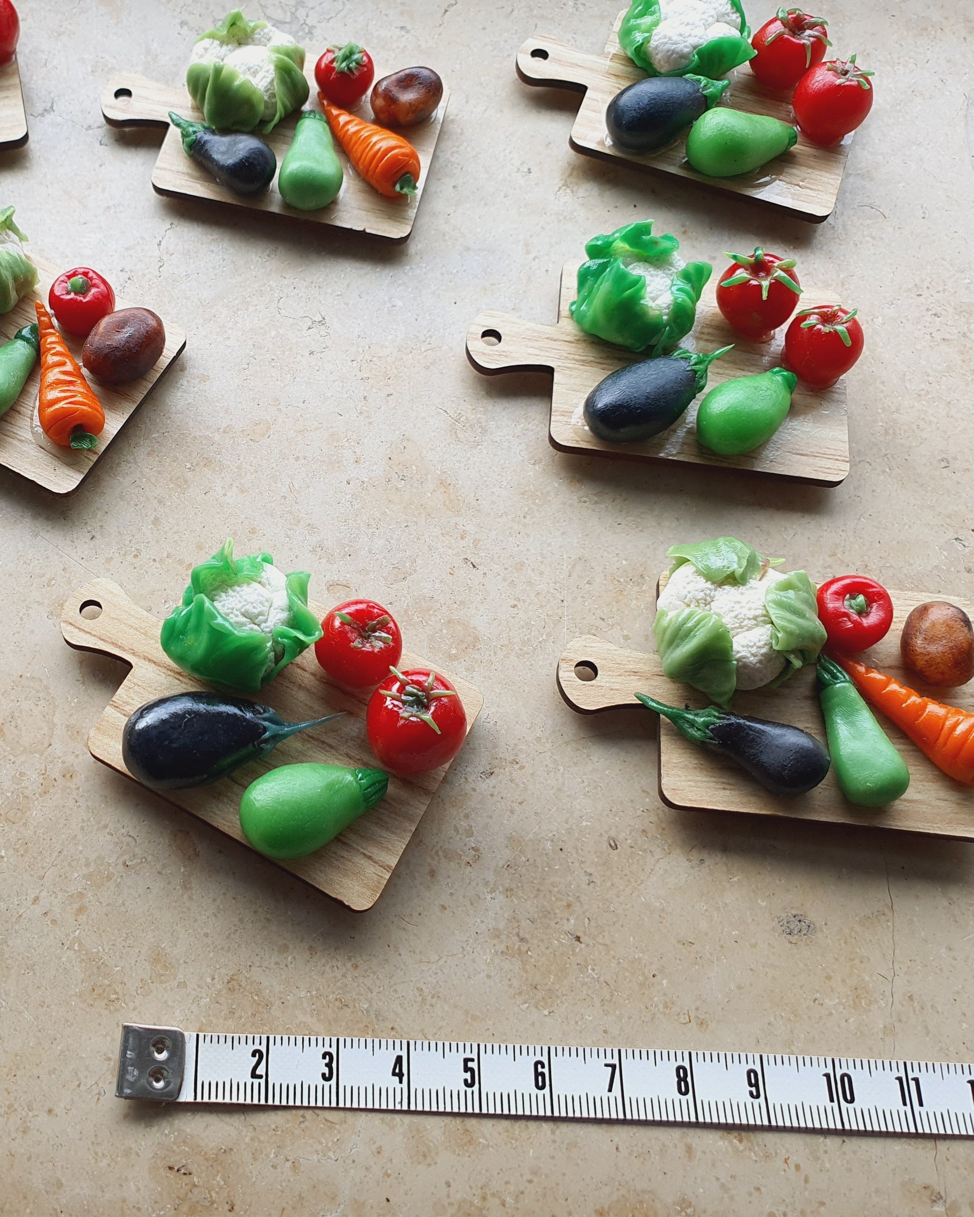 Dieser originelle Kühlschrankmagnet mit Gemüse auf Schneidebrett verbindet praktischen Nutzen mit dekorativer Detailfreude. Sorgfältig gearbeitete Miniatur-Gemüsestücke – ob knackige Tomaten, frische Gurken oder bunte Paprika – machen jedes Schneidebrett zu einem kleinen Kunstwerk.