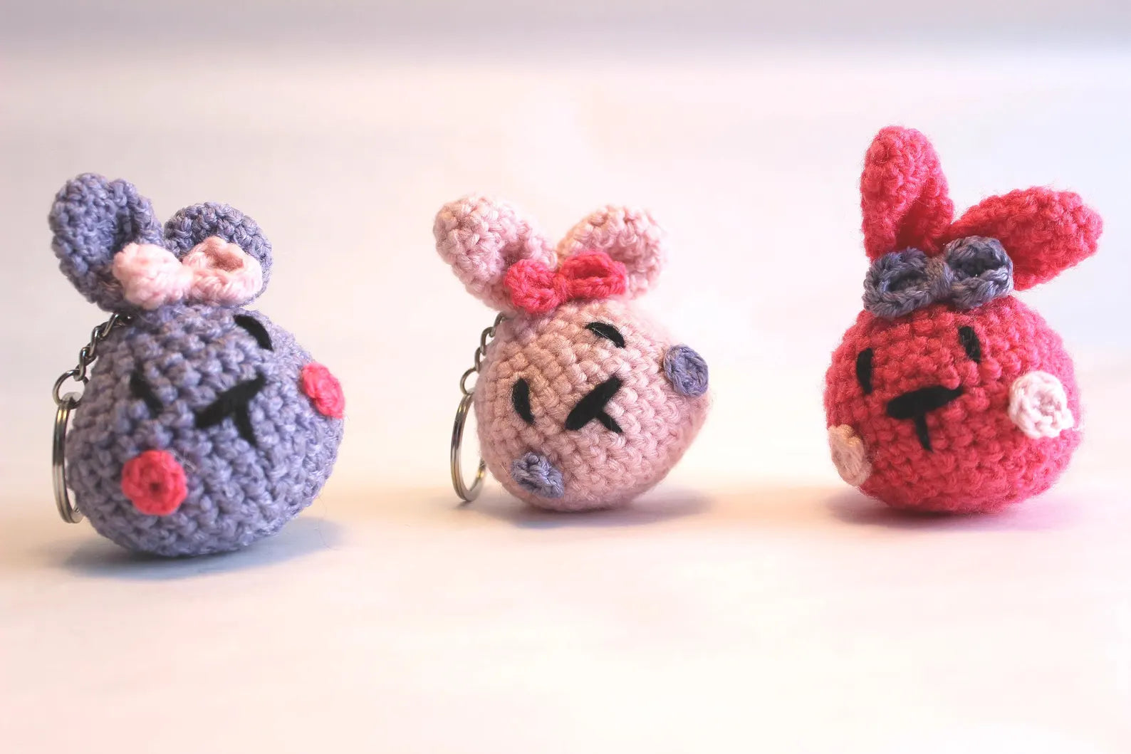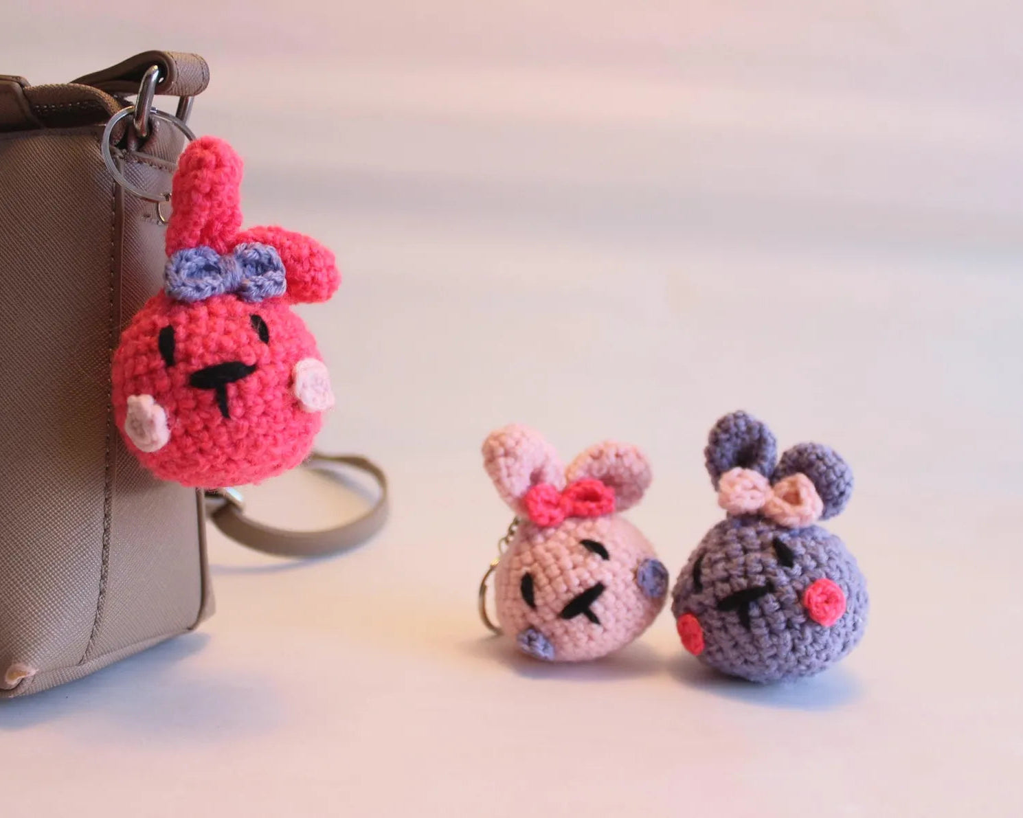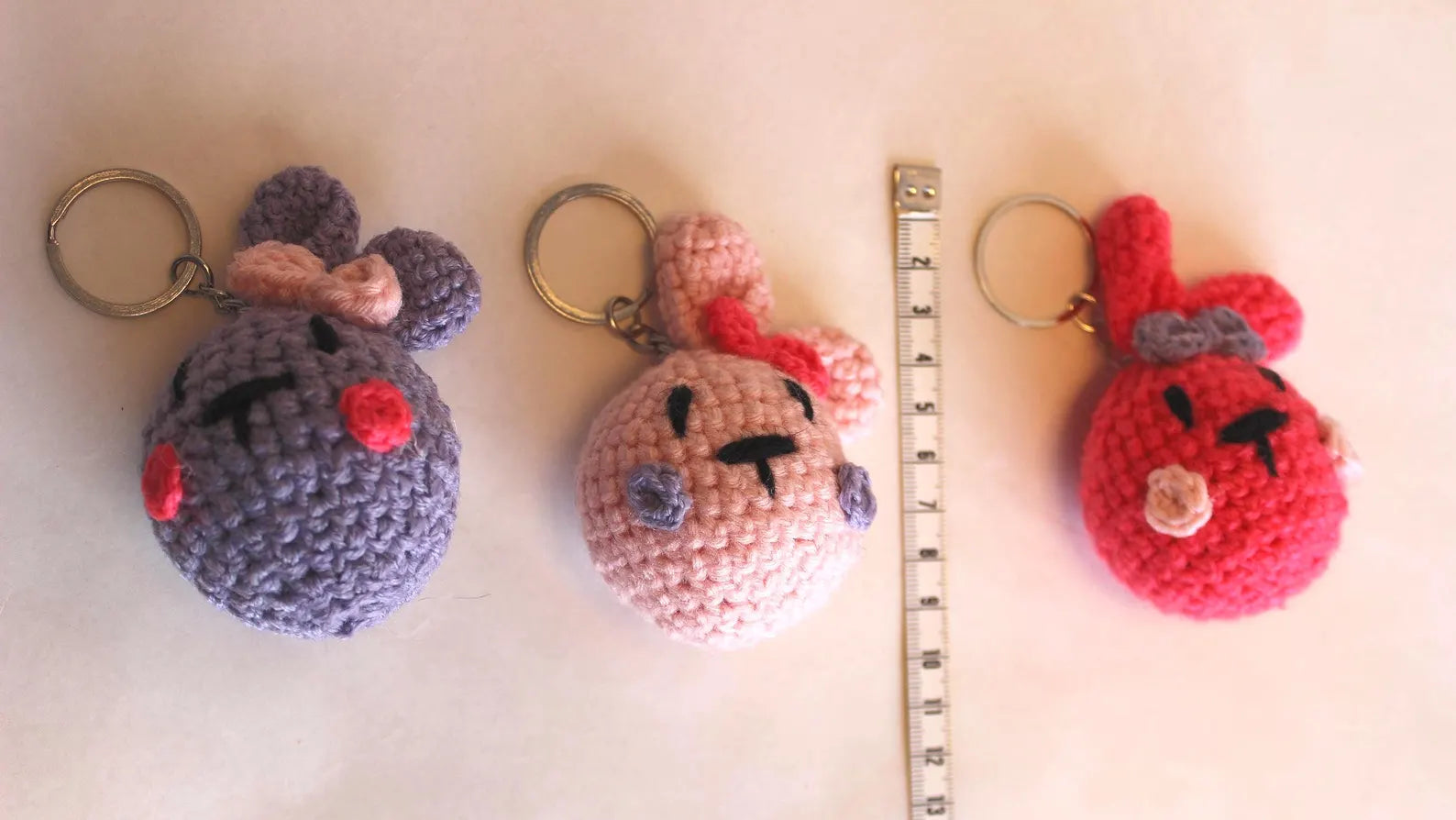 Diese handgemachten Mini-Hasen gibt es in verschiedenen fröhlichen Farben – jeder ein Unikat mit ganz eigenem Charakter. Mit ihren langen Ohren und den liebevollen Details sind sie perfekte Anhänger für Schlüssel, Taschen oder Rucksäcke.