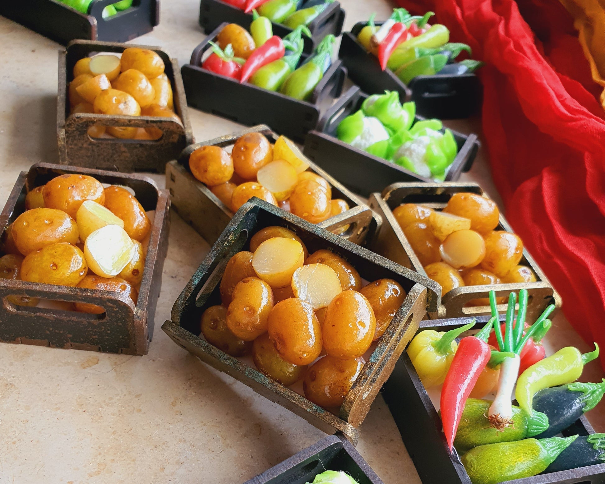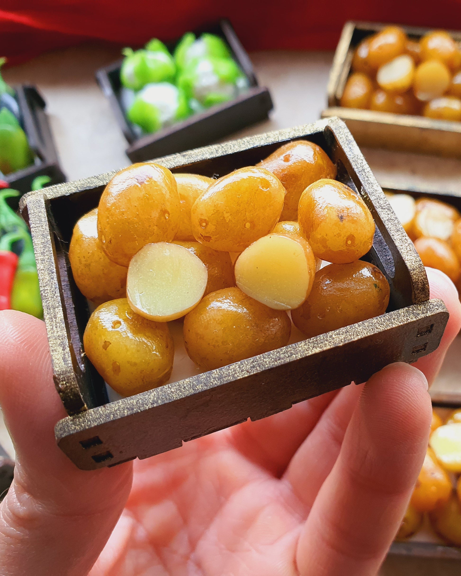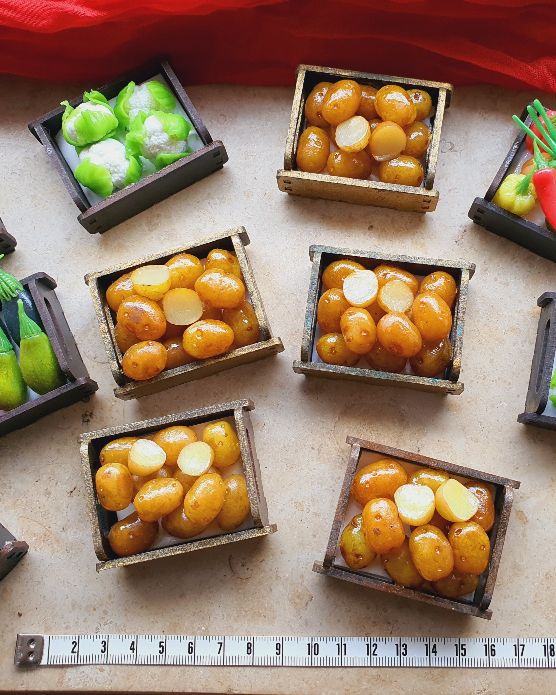 Handgemachte Miniatur-Kartoffeln-Kisten für Puppenhaus