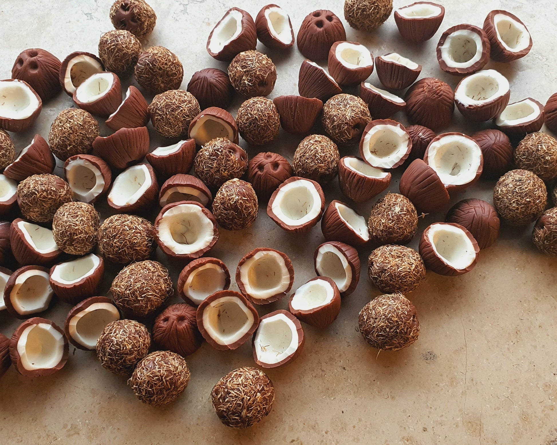 Handgemachte Miniatur-Kokosnuss/ halbe Kokosnuss für Puppenhaus in zwei Größen