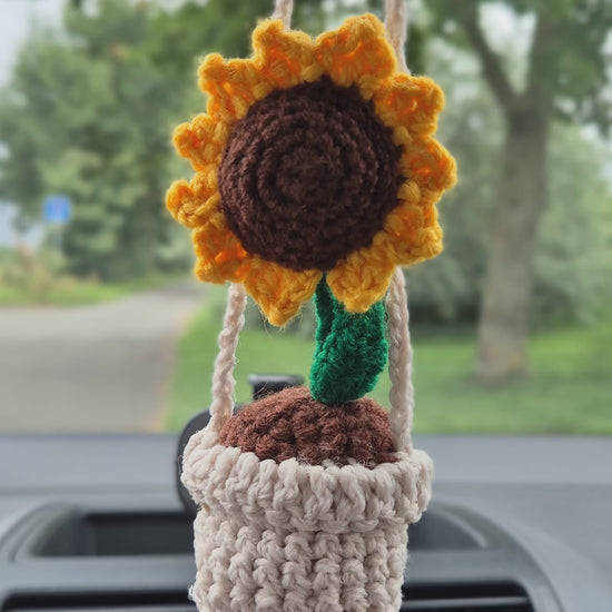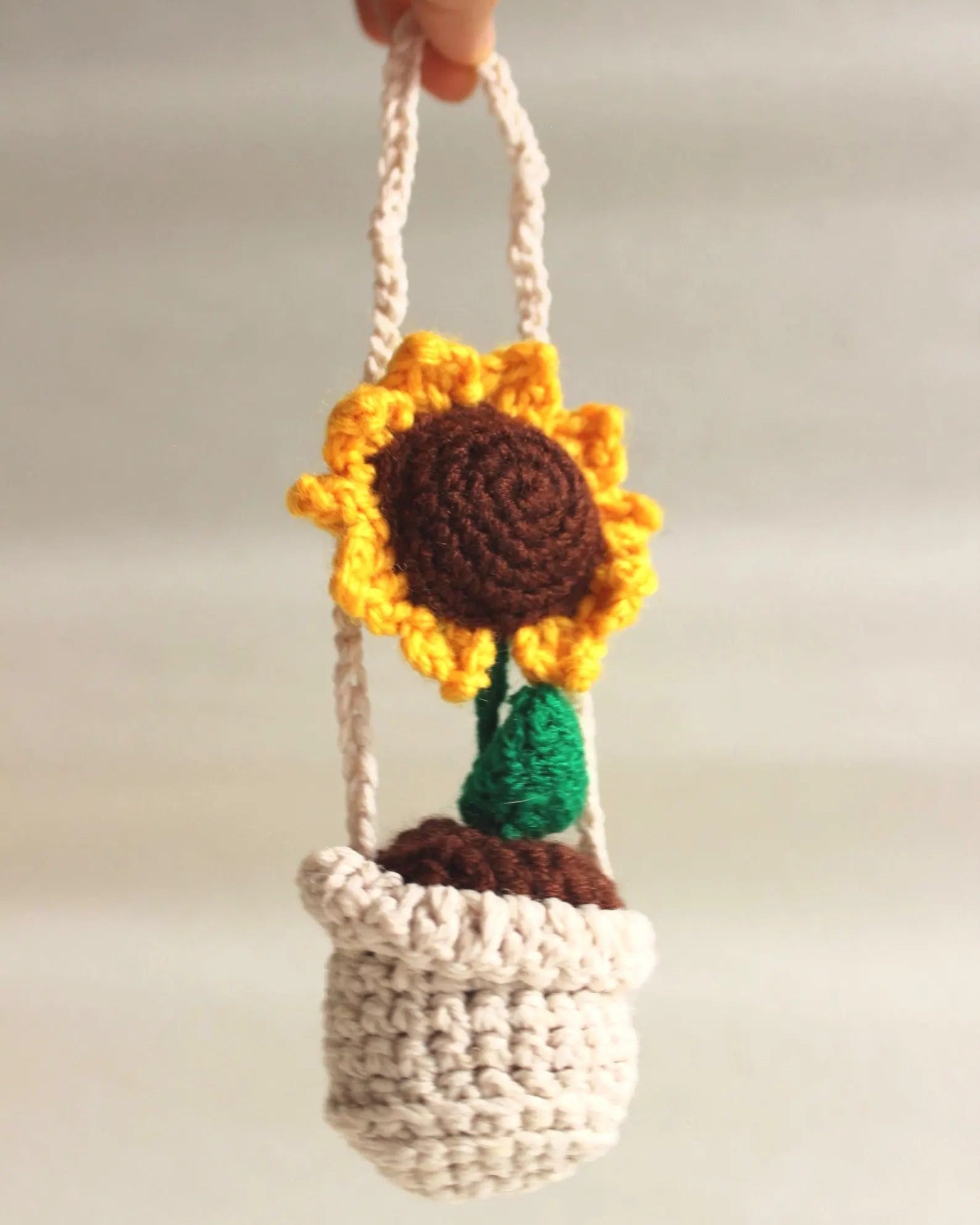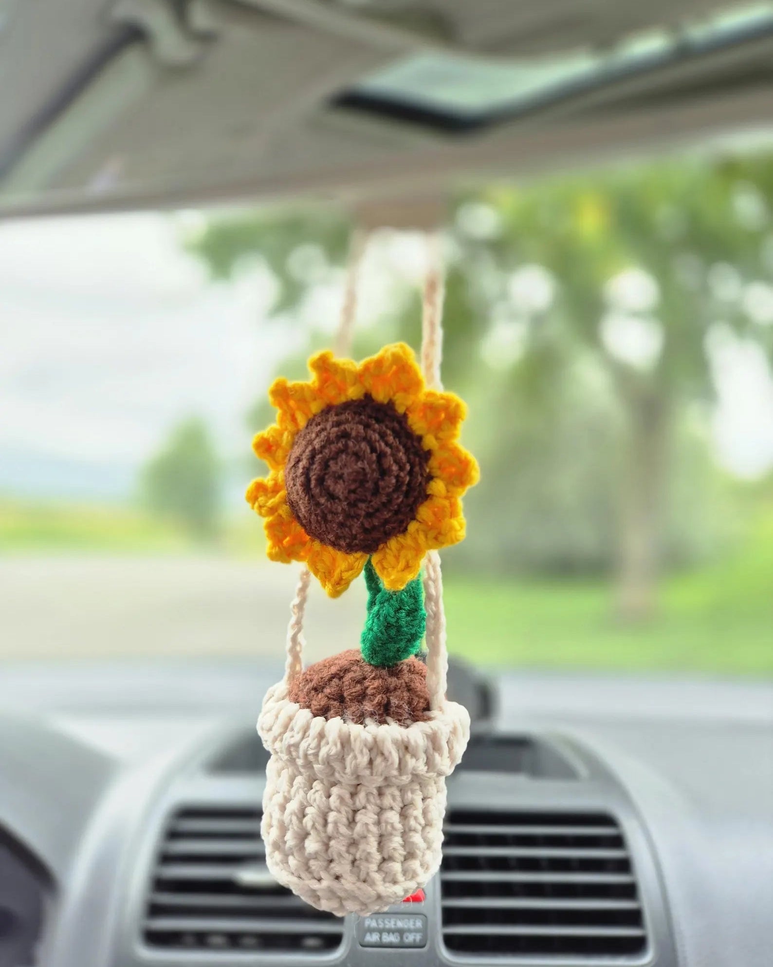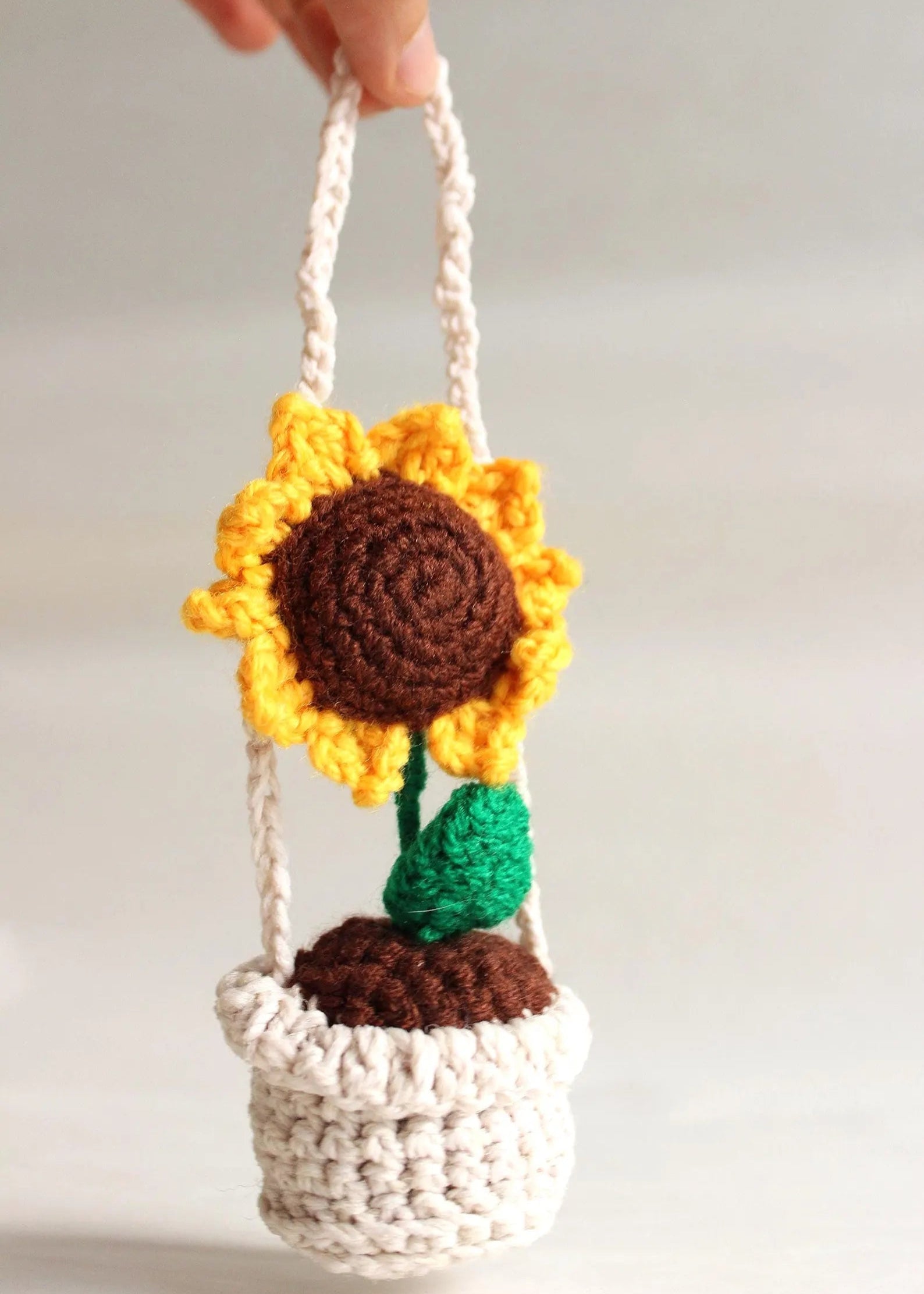 🌻 Gehäkelte Sonnenblume – ein Stück Sonnenschein für Auto & Tasche