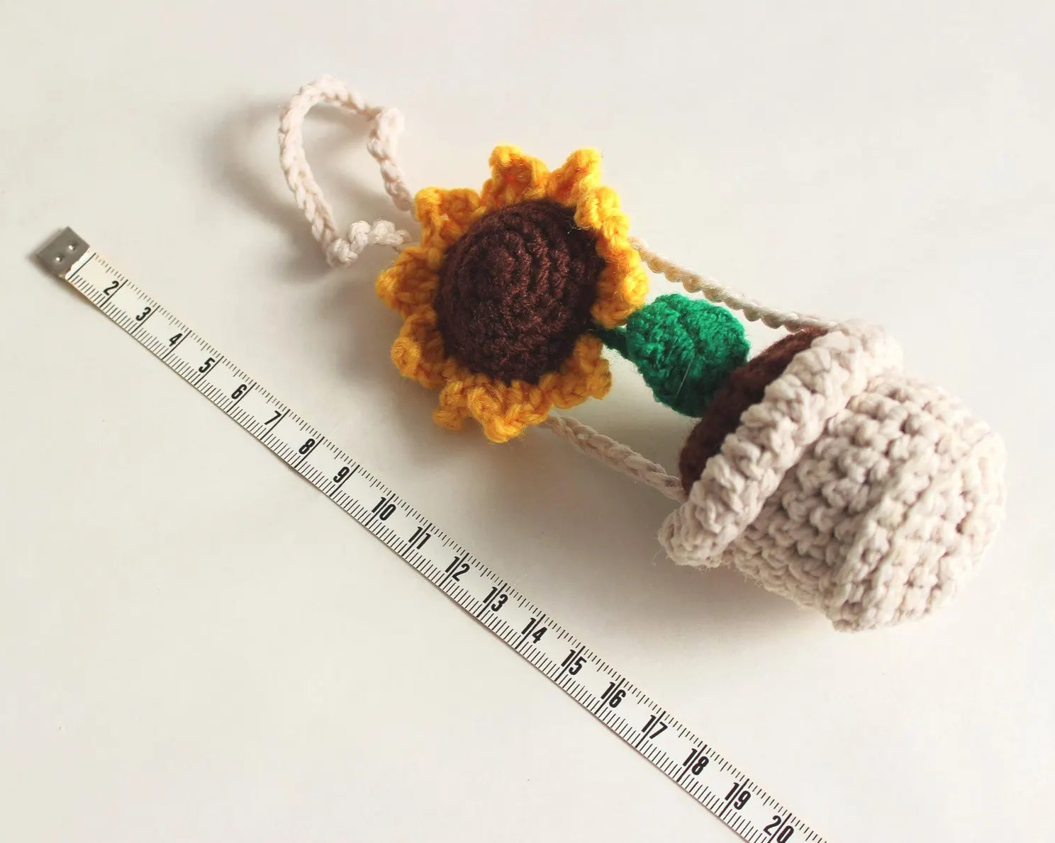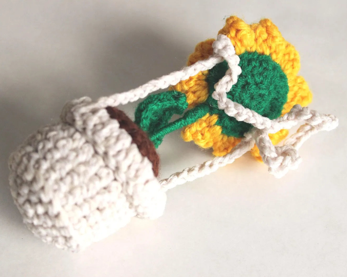 Diese handgemachte Sonnenblume bringt gute Laune überallhin. Ob als fröhliche Deko am Innenspiegel deines Autos oder als farbenfroher Hingucker an deiner Tasche – sie strahlt Wärme, Freude und Natürlichkeit aus.